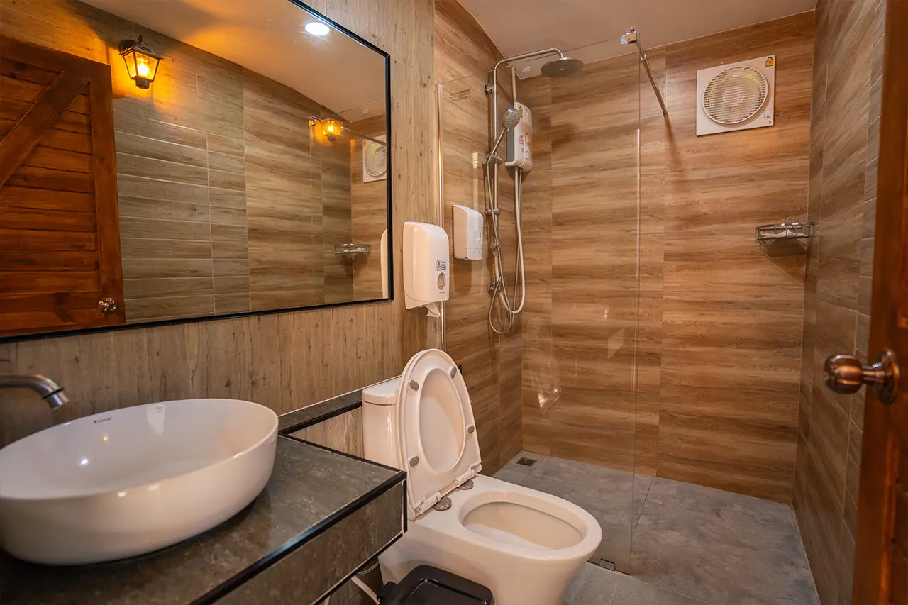 บ้านพักเมเปิ้ล 4 มี 1 ห้องนอน และ 1 ห้องน้ำ สามารถพักได้สูงสุด 2 ท่าน/หลัง เสริมได้สูงสุด 1 ท่าน รวม 3 ท่าน เสริมท่านละ 850 บาท (กรณีลูกค้าแจ้งเสริมแล้วไม่สามารถยกเลิกได้ทุกกรณี) ราคาบ้านพักรวมอาหารเช้า เด็กไม่เกิน 8 ปี พักฟรี 1 ท่าน (ไม่มีที่นอนเสริม)