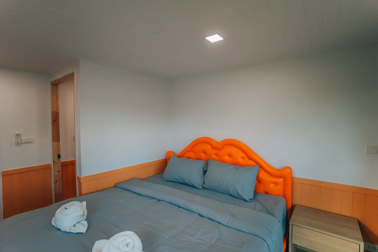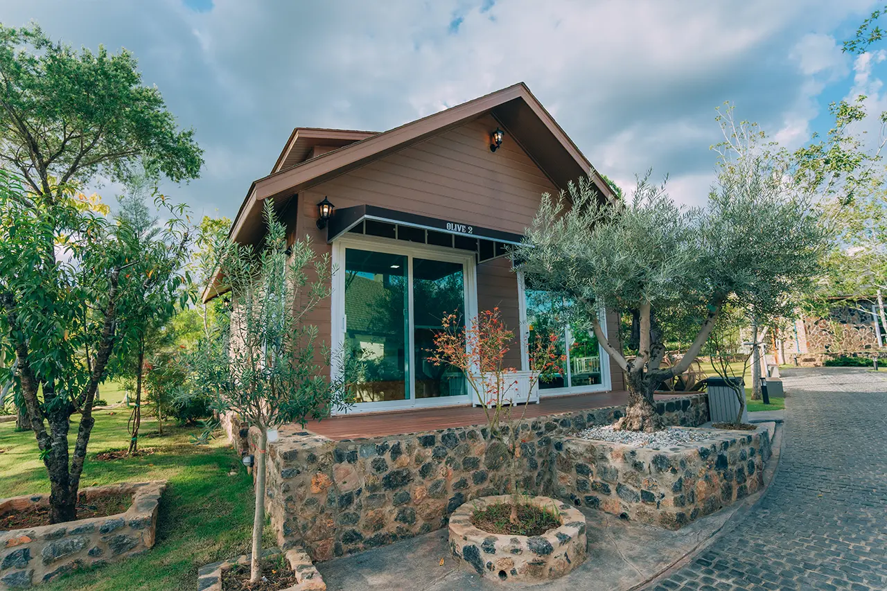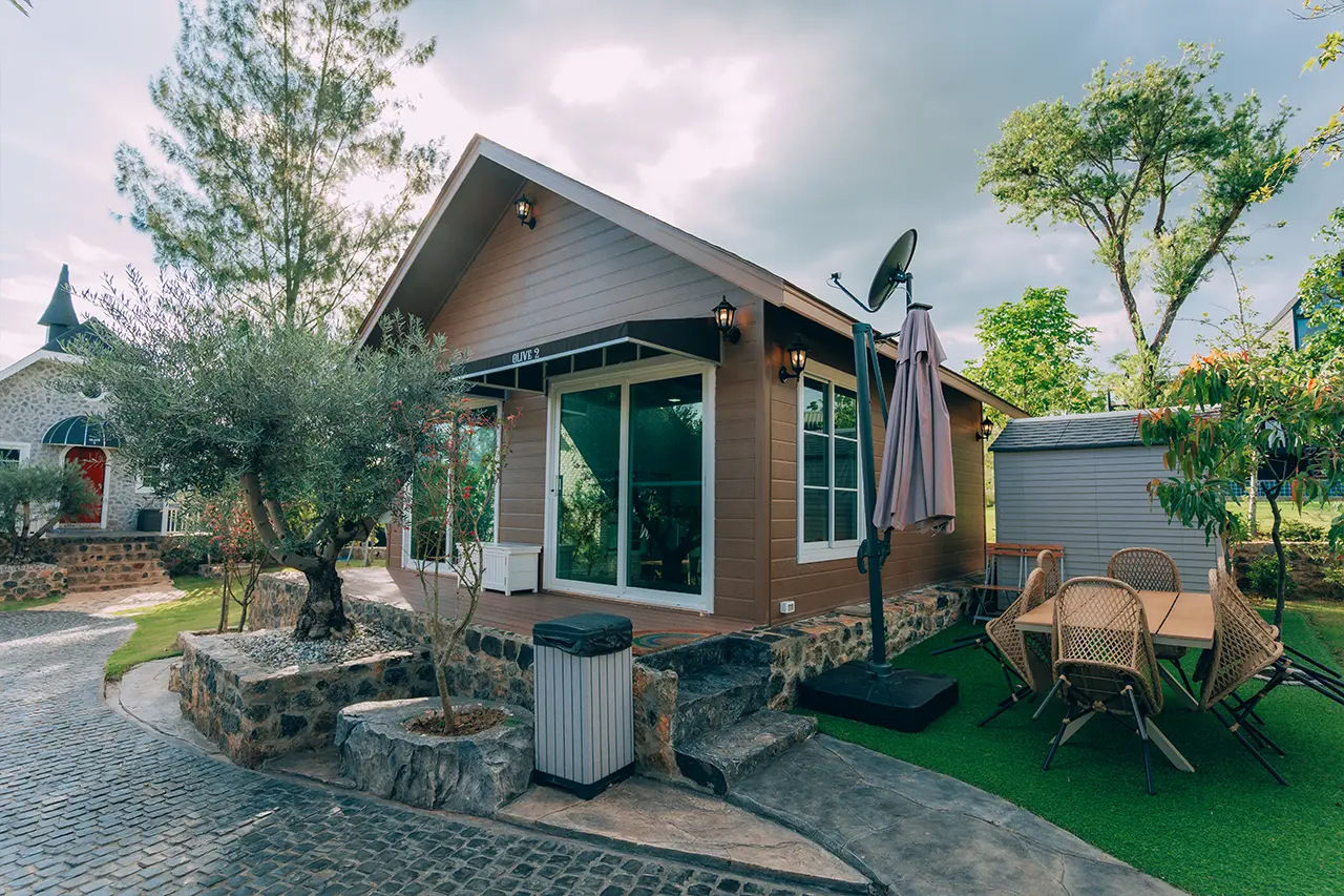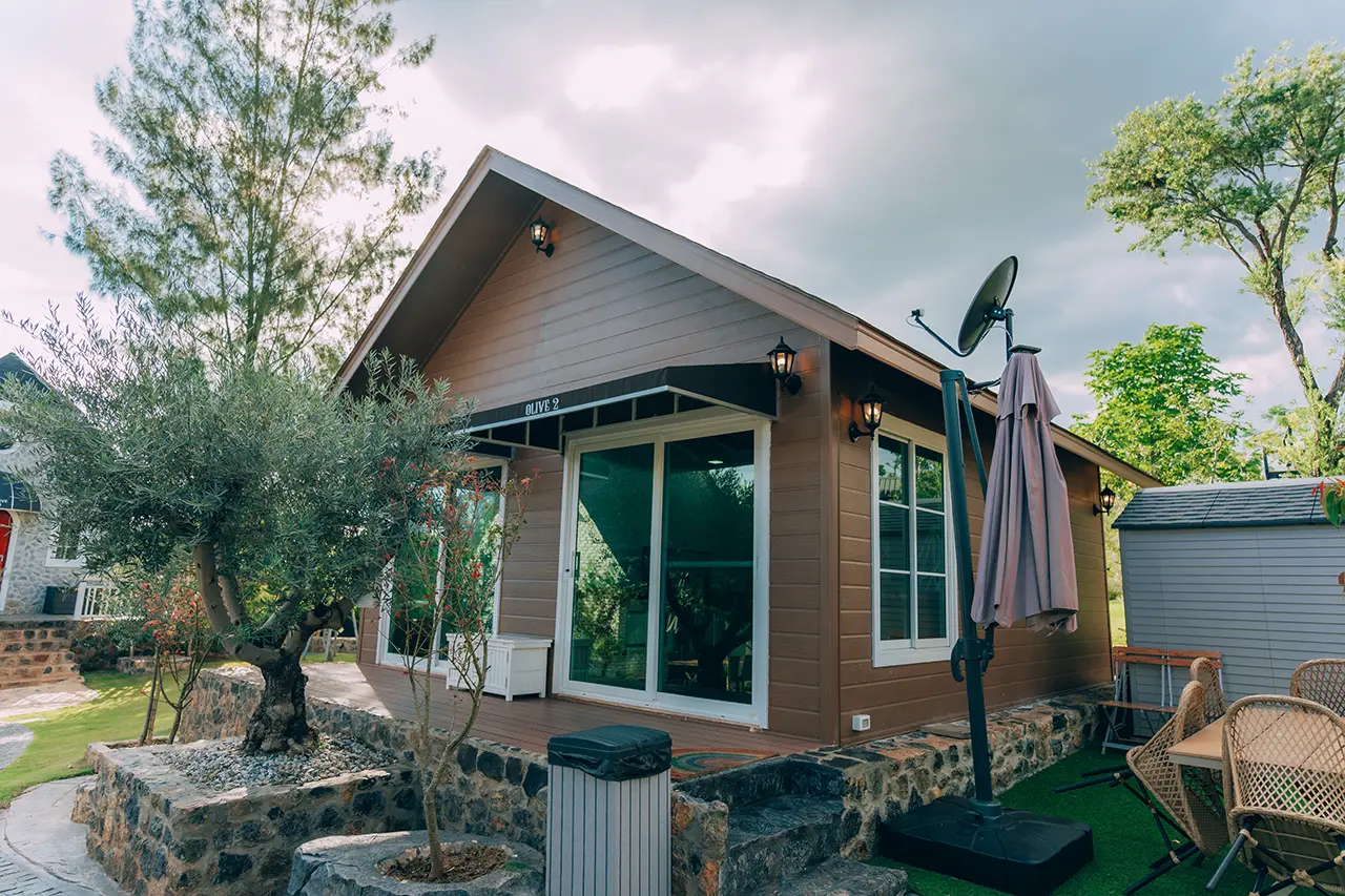 บ้านพักโอลีฟ 2 มี 1 ห้องนอน 1 ชั้นลอย และ 2 ห้องน้ำ สามารถพักได้ 6 ท่าน/หลัง เสริมได้สูงสุด 2 ท่าน รวม 8 ท่าน เสริมท่านละ 850 บาท (กรณีลูกค้าแจ้งเสริมแล้วไม่สามารถยกเลิกได้ทุกกรณี) ราคาบ้านพักรวมอาหารเช้า เด็กไม่เกิน 8 ปี พักฟรี 2 ท่าน (ไม่มีที่นอนเสริม)