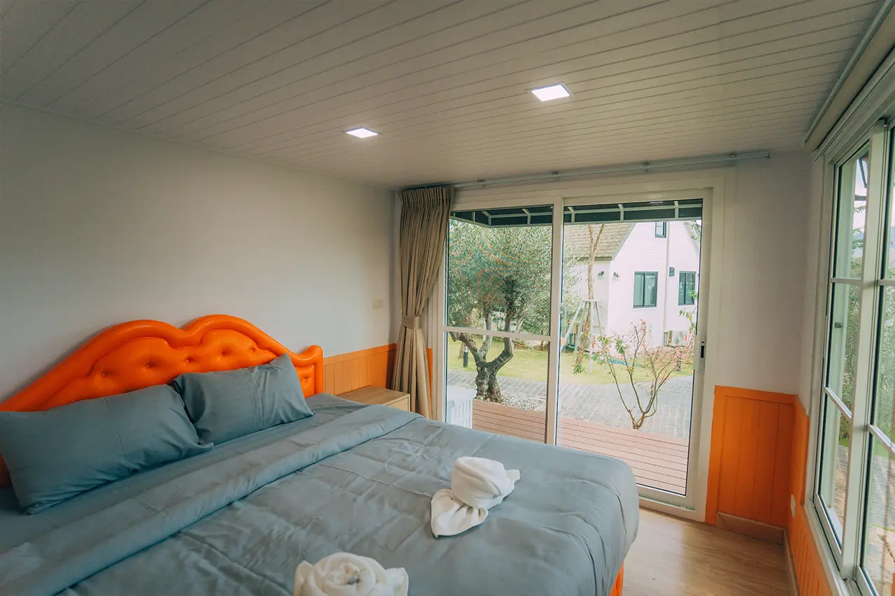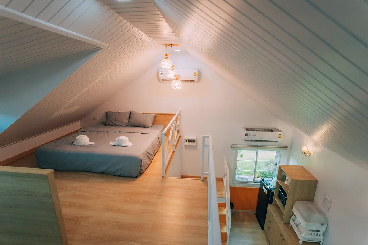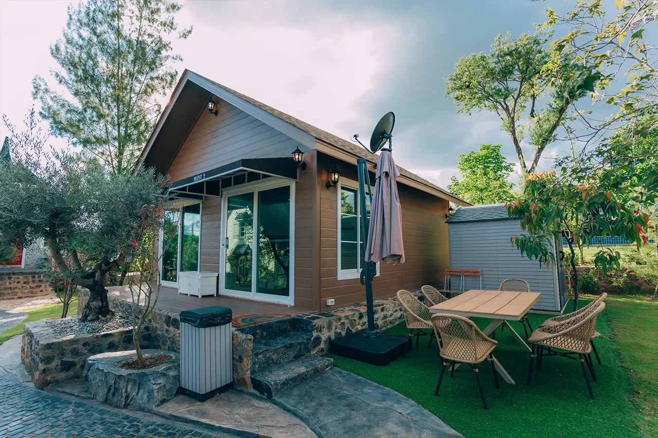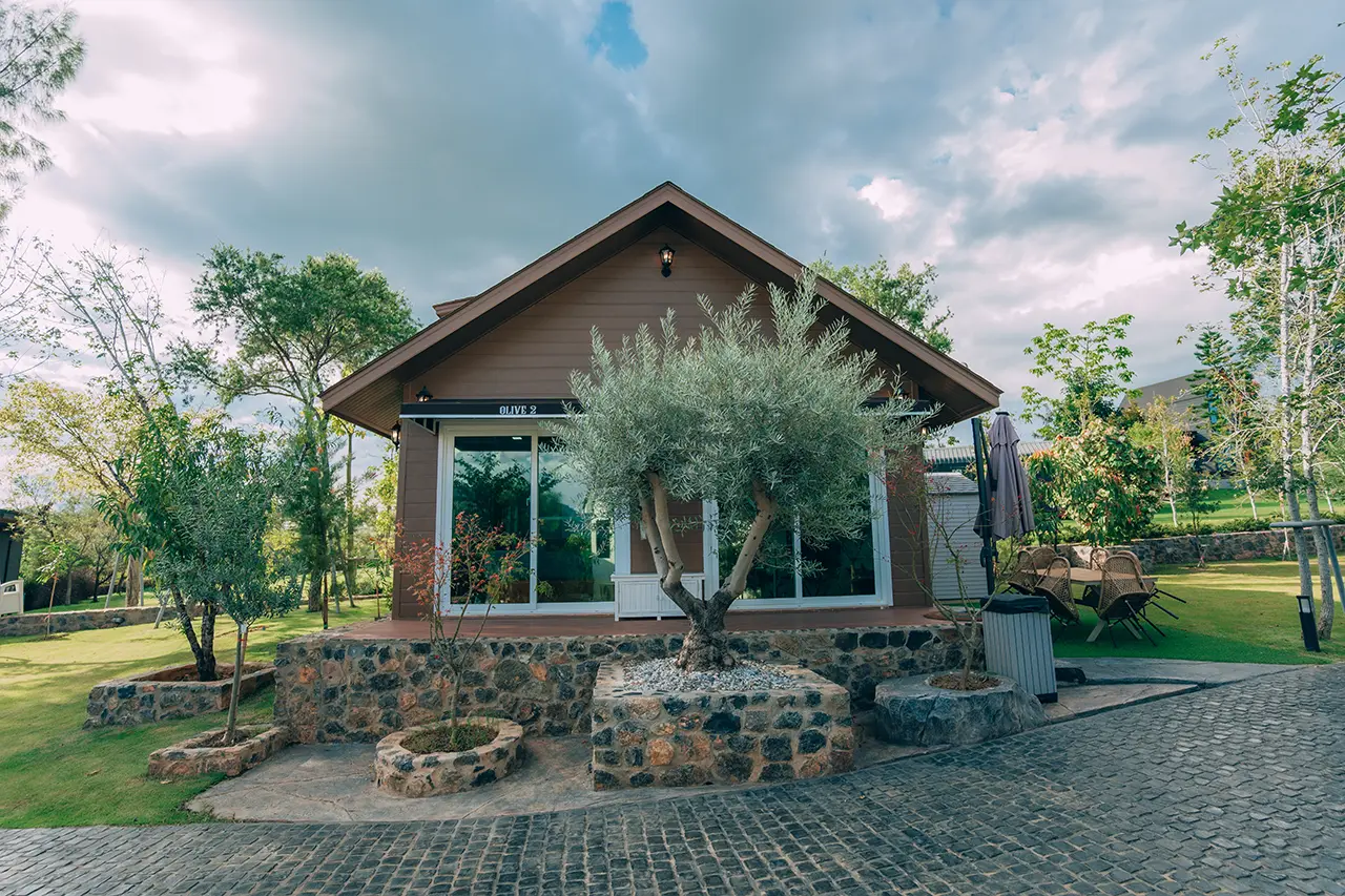 บ้านพักโอลีฟ 2 มี 1 ห้องนอน 1 ชั้นลอย และ 2 ห้องน้ำ สามารถพักได้ 6 ท่าน/หลัง เสริมได้สูงสุด 2 ท่าน รวม 8 ท่าน เสริมท่านละ 850 บาท (กรณีลูกค้าแจ้งเสริมแล้วไม่สามารถยกเลิกได้ทุกกรณี) ราคาบ้านพักรวมอาหารเช้า เด็กไม่เกิน 8 ปี พักฟรี 2 ท่าน (ไม่มีที่นอนเสริม)