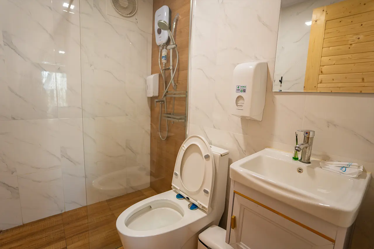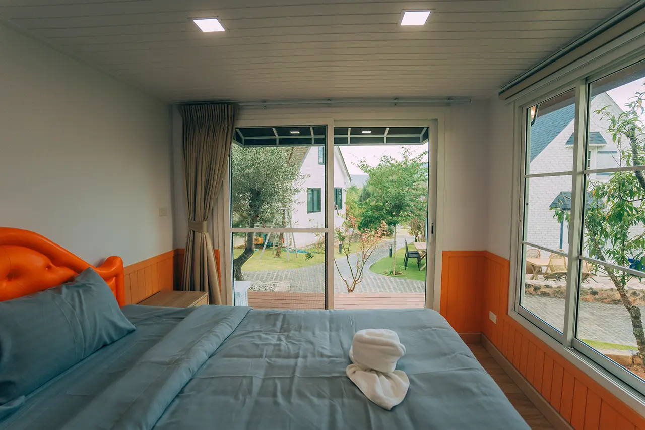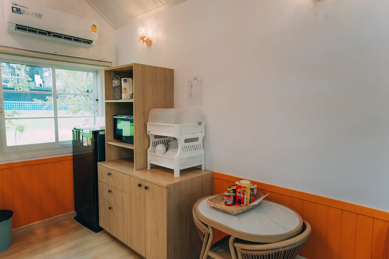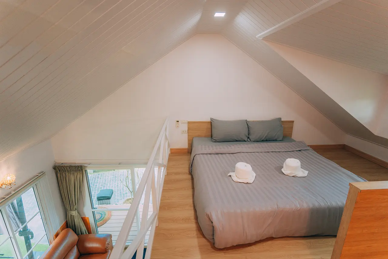 บ้านพักโอลีฟ 2 มี 1 ห้องนอน 1 ชั้นลอย และ 2 ห้องน้ำ สามารถพักได้ 6 ท่าน/หลัง เสริมได้สูงสุด 2 ท่าน รวม 8 ท่าน เสริมท่านละ 850 บาท (กรณีลูกค้าแจ้งเสริมแล้วไม่สามารถยกเลิกได้ทุกกรณี) ราคาบ้านพักรวมอาหารเช้า เด็กไม่เกิน 8 ปี พักฟรี 2 ท่าน (ไม่มีที่นอนเสริม)
